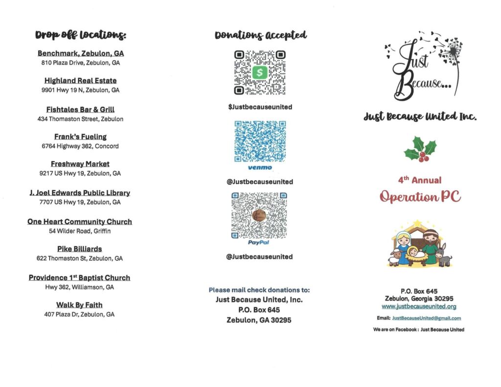 If you would like to directly mail your item please send to PO Box 645 Zebulon, GA 30295.